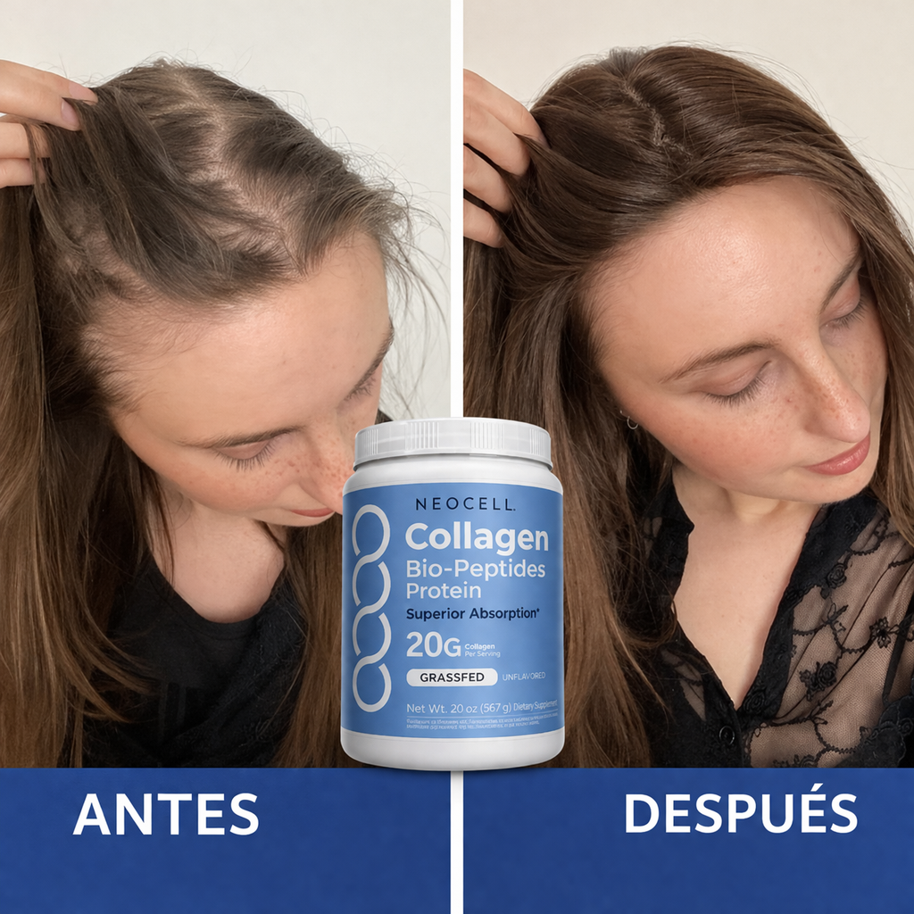 A las 2–3 semanas, tu piel se ve más hidratada y firme, y tu cabello más fuerte y con brillo natural.